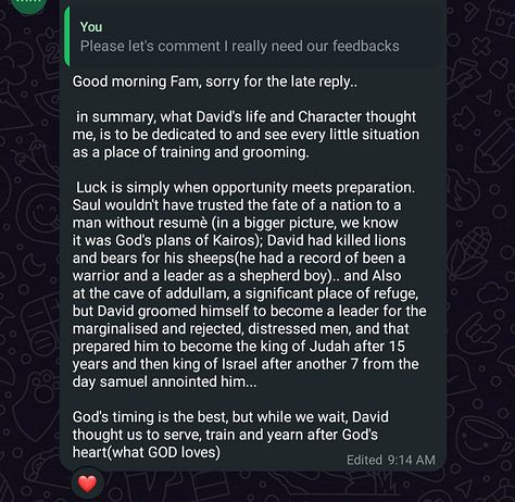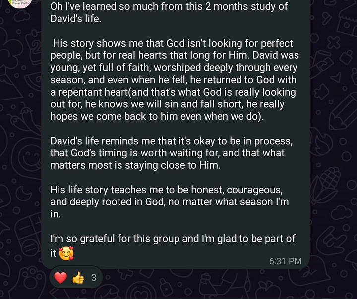 A few months ago, I started something close to my heart, a WhatsApp group called The Bible Cycle. It's a warm, real, and safe space where we read the Bible together, drop scriptures, ask honest questions, share reflections, and pray for one another.